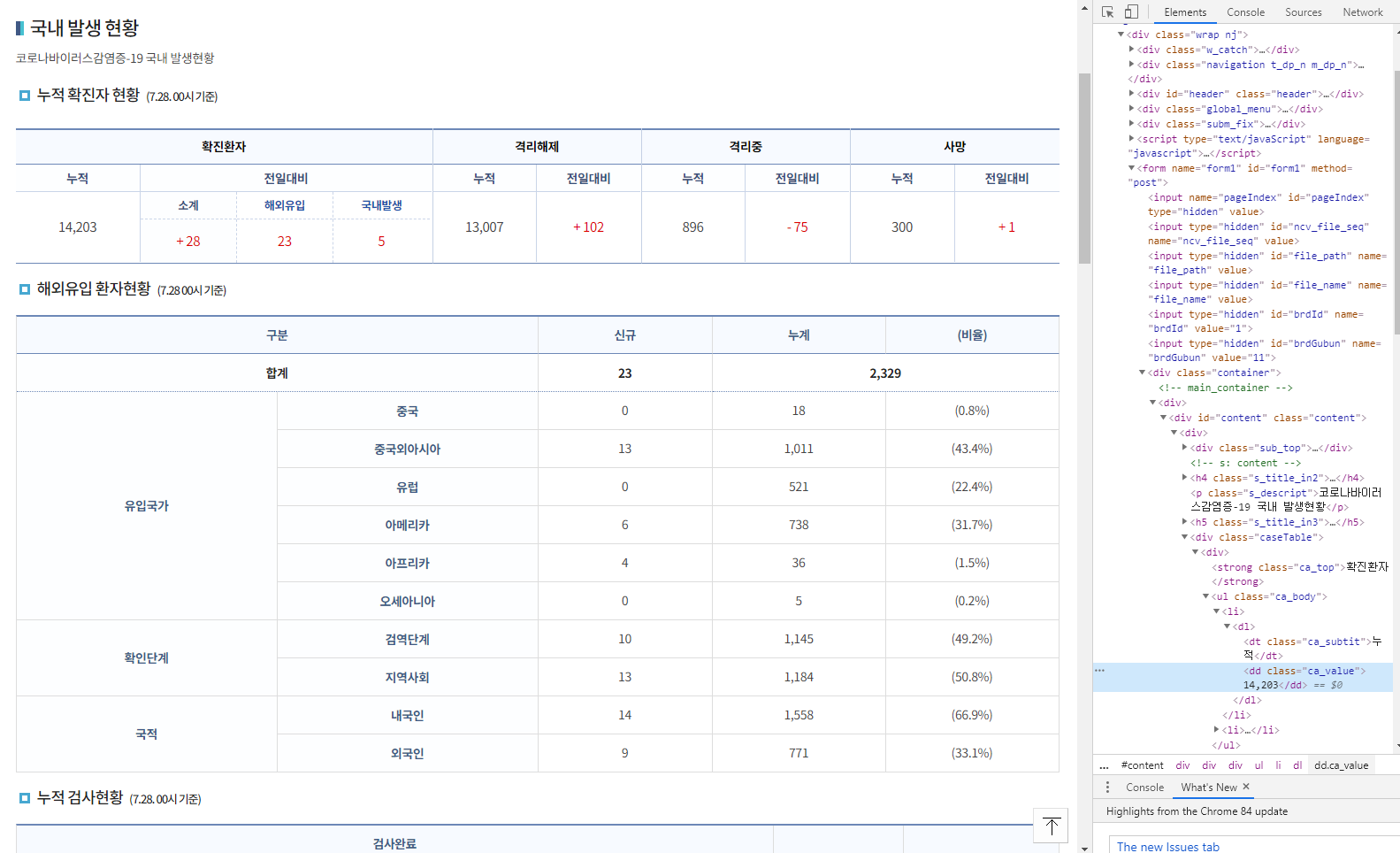 저는 코로나 사이트에 들어가서 총 확진자의 수를 가져오도록 하겠습니다.