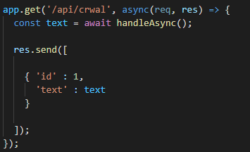 여기서 중요한 점이 우리가 크롤링을 비동기형태로 받아오고 있기 때문에 서버로 던져주는 것도 비동기 형식으로 던져주면 됩니다.