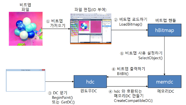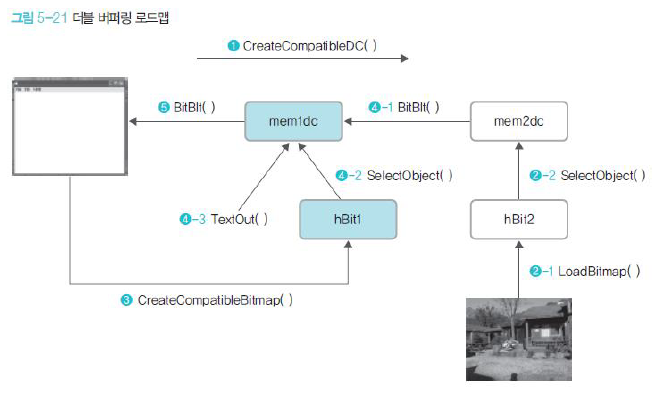 추가된 메모리 디바이스 콘텍스트에 그리기를 원하는 그림들을 모두 출력한 다음 화면 디바이스 콘텍스트로 한꺼번에 옮기는 방법을 이용합니다.