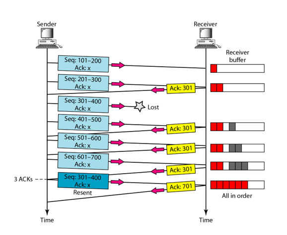 TCP의 에러 제어는 Selective Repeat와 거의 비슷합니다.