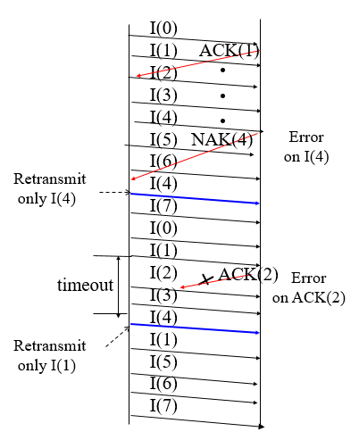 현재의 Window 크기의 범위 내에서 프레임을 계속 전송해주는 것은 Go-Back-N-ARQ 와 같지만 에러가 발생해서 재전송을 해야 할 때 차이가 있다.