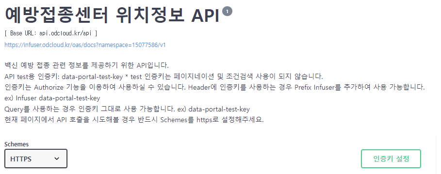 설명은 해당 API마다 아래와 같이 잘 나와있으므로, 각각 보시고 인증키를 설정해 주시면 됩니다.