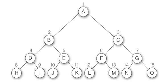 루트를 1번으로 하여 2h+1-1까지 정해진 위치에 대한 노드 번호를 가집니다.