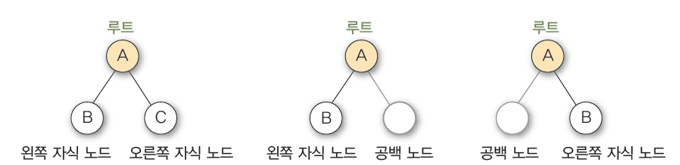 이진트리의 모든 노드는 왼쪽 자식 노드와 오른쪽 자식 노드만 가지게 되며,