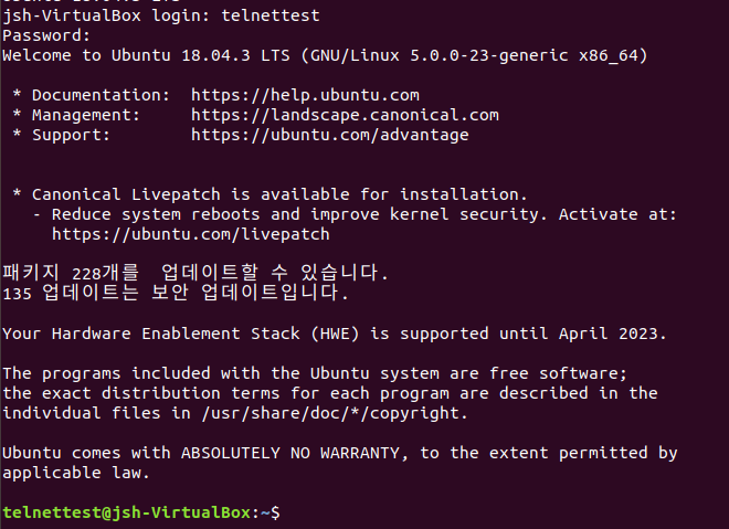 텔넷 클라이언트에서 접속하게 되면 서버 앞에 앉아서 직접 텍스트 모드로 작업하는 것과 완전히 동일한 효과를 보여줍니다.