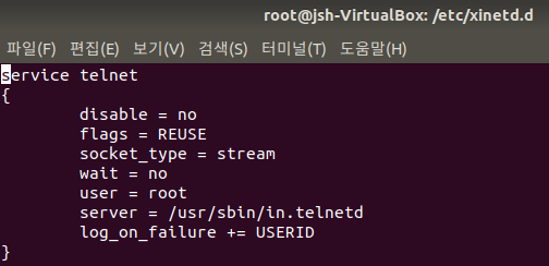 2./etc/xinetd.d/telnet 파일 편집 (설정 파일 편집)