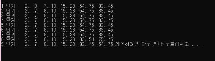 for (j = i + 1; j < size; j++) {//첫번째가 키니까 그 뒤에서부터 size까지 반복을 실행한다.