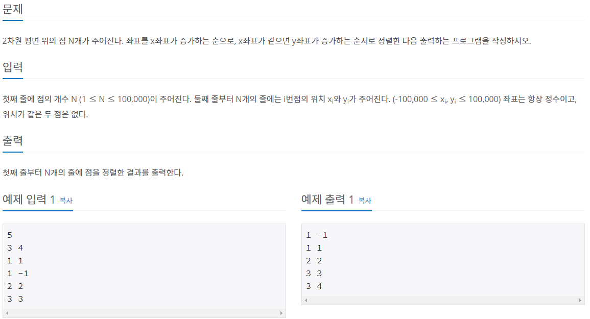 이번에는 좌표 정렬 문제를 풀어보았습니다.
