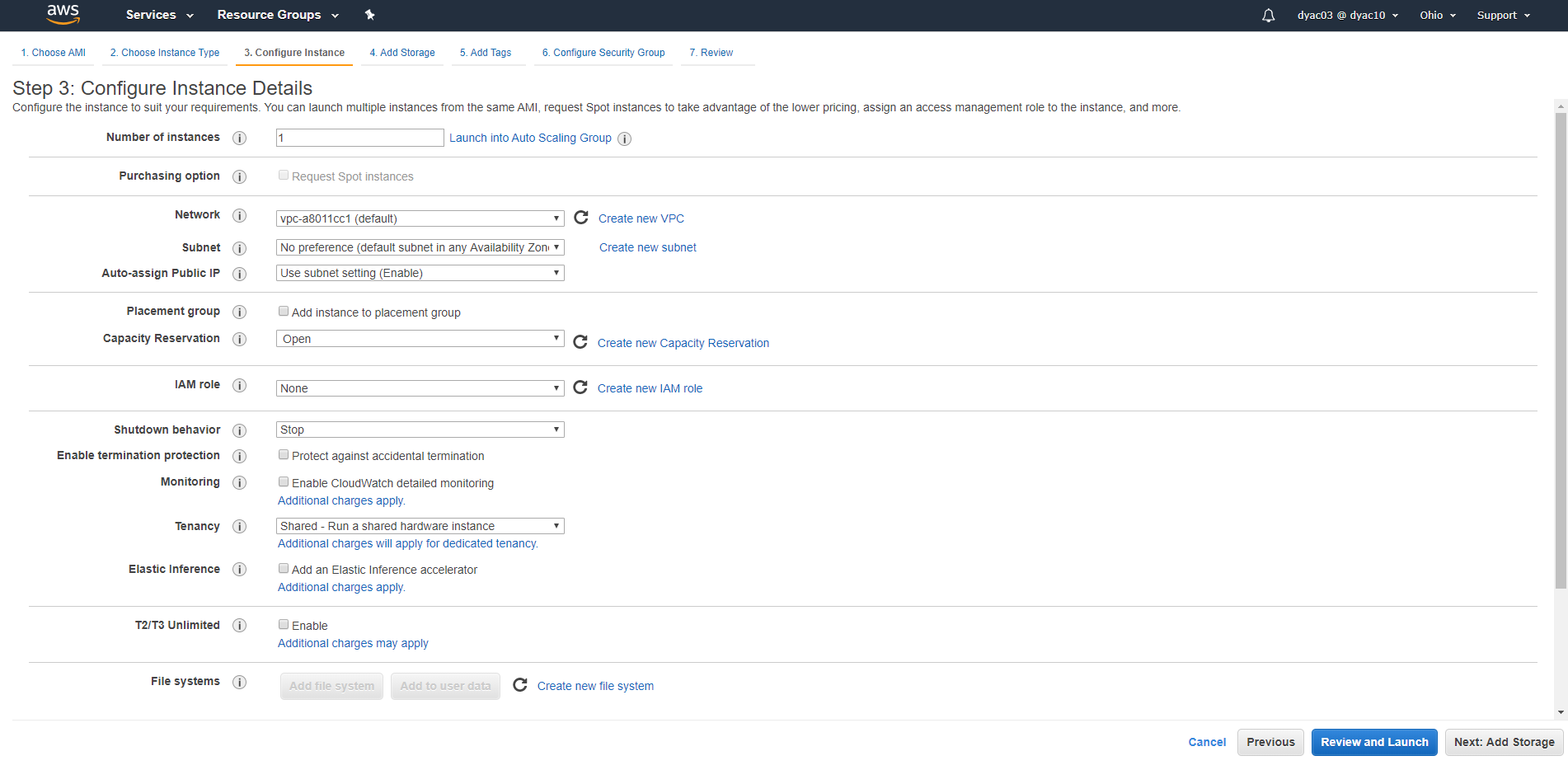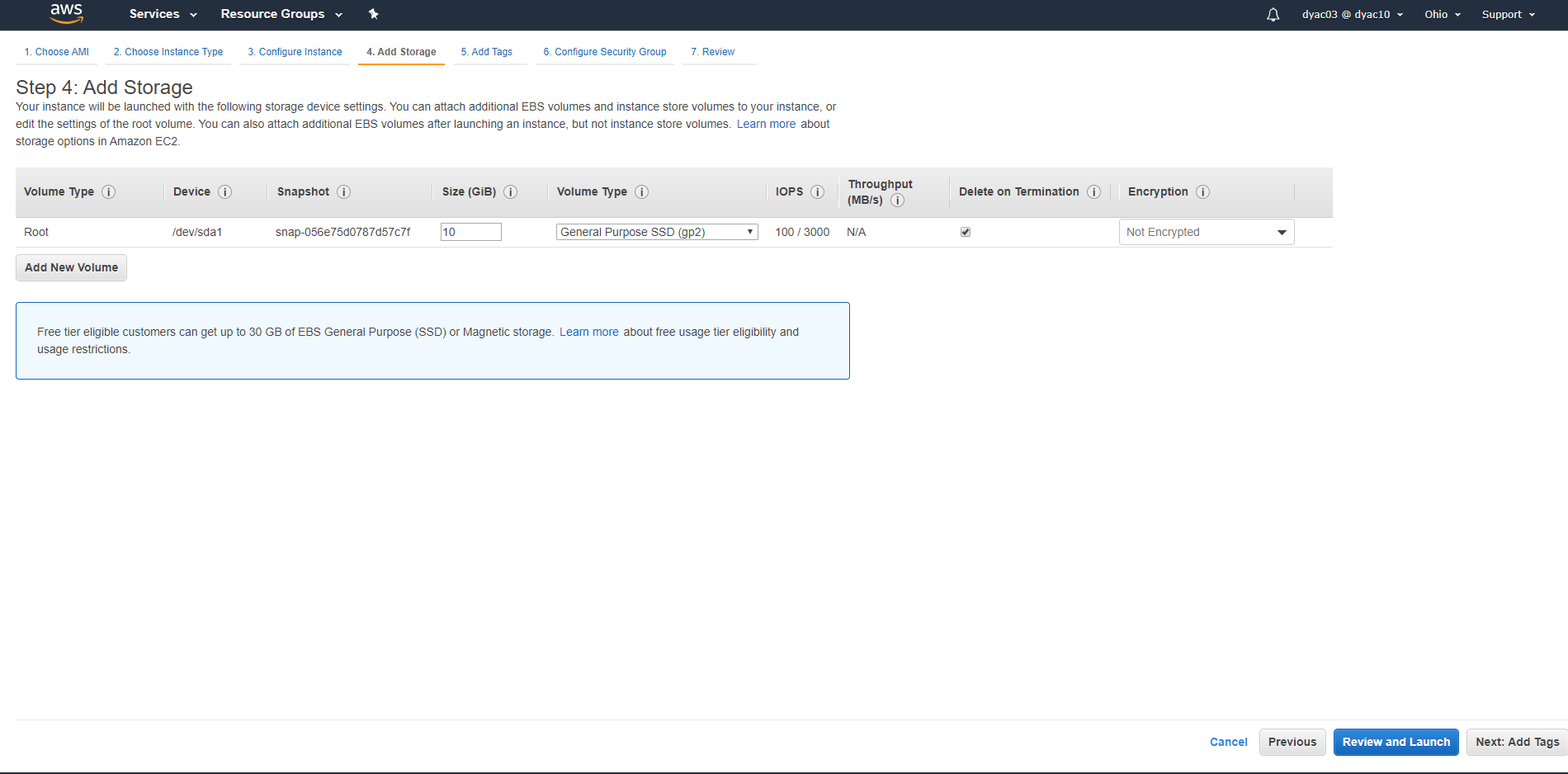 - 그리고 리전을 선택해야하는데 저는 오하이오주에 있는 리전을 이용하겠습니다.