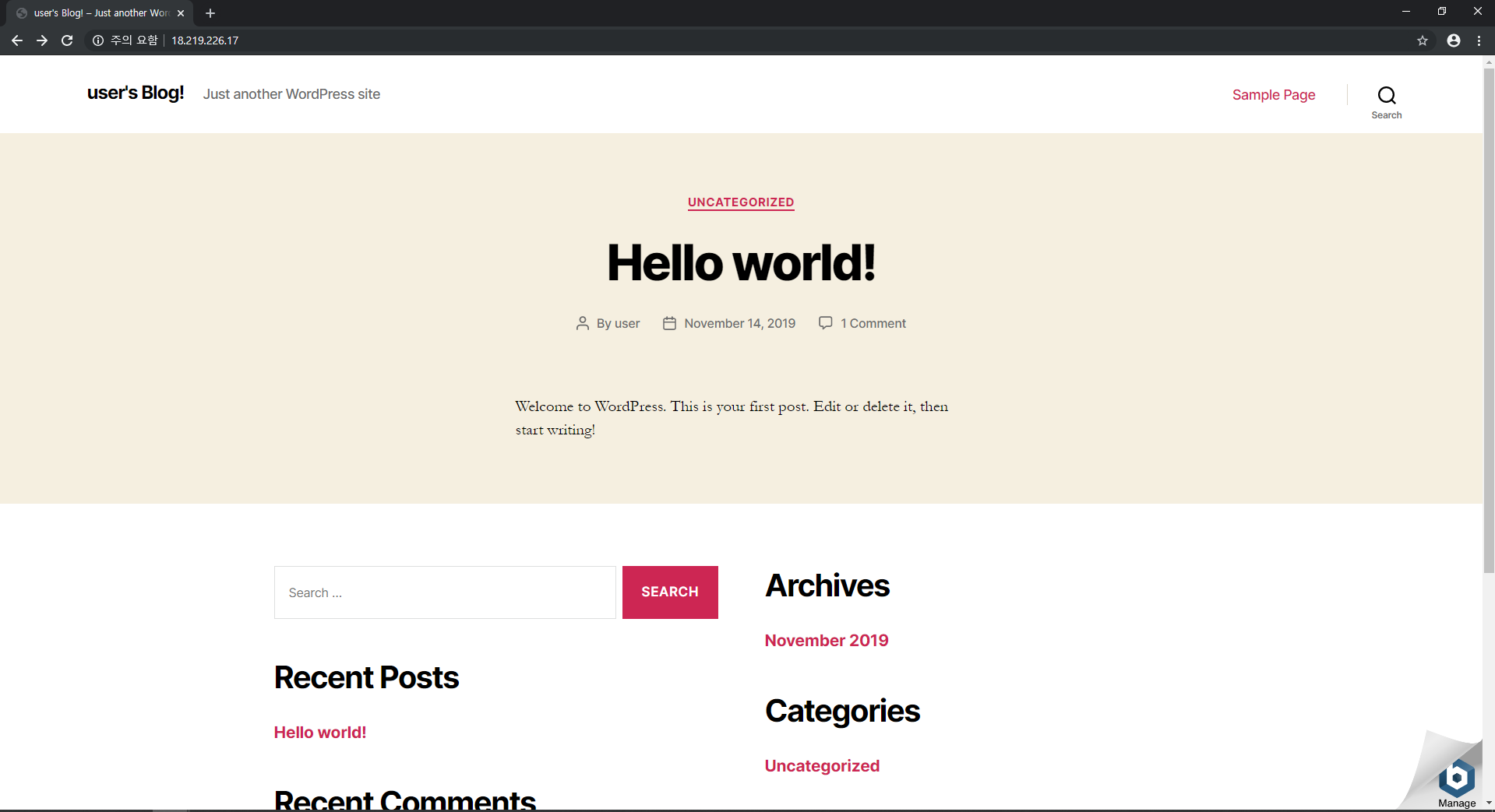 public Ip의 주소로 가게 되면 wordpress가 나오게 된다.