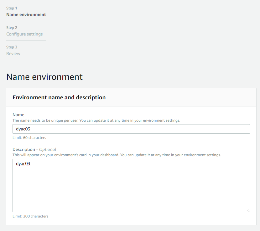 create environment 를 클릭한다.