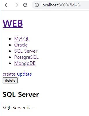 `<a href="/create">create</a> <a href="/update?id=${title}">update</a>`